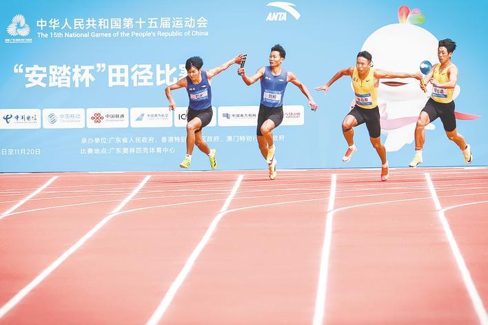 刘洋(左一)和刘科(左二)在男子100米接力比赛中表现出色。