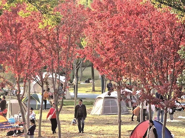 长青公园开放露营区 享受初冬独特的红色